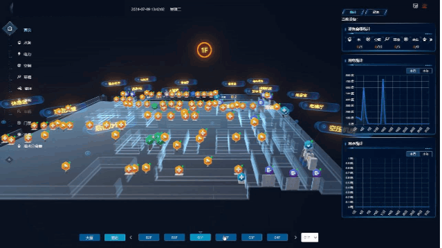 相较于传统建筑数据分析方式,3D大屏更加直观地一站式完成空间数据的分类呈现,如设备的区域分布、坐标定位等,极大地提高了数据整合与管理的效率。
