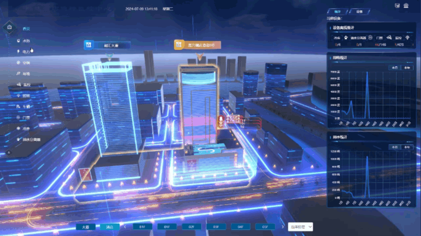 平台通过集成电力、空调BA、智能照明、给排水、车辆、门禁等系统建立统一的运营管理平台,对建筑安全生产各要素进行在线监测,并运用3D可视化技术直观呈现关键信息,提升资产管理与监控管理的效率。