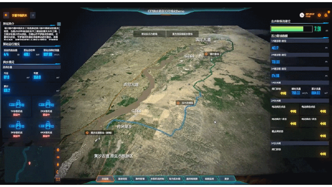 在水利与水务领域,以数字孪生技术构建水利水务系统虚拟模型,通过集成多源数据将虚拟信息与现实环境相融合,实时展现不同水利水务场景下的工艺流程、设备基础设施、管道管网、电气设备等数据信息,建立系统工艺流程控制的大系统集成平台,实现水电一体化监控、智能管控与分析、高效调度等。