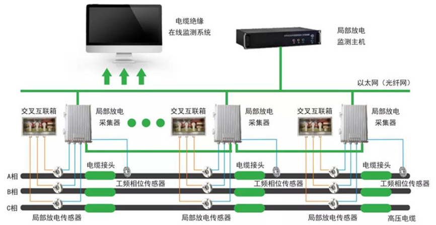 电缆局部放电监测系统通过对高压电缆本体、中间接头和终端头等部位局部放电的监测,及时发现绝缘系统中的薄弱环节,评估其绝缘状态,找出故障原因。