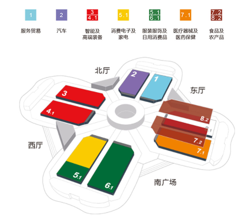 这座地处大虹桥区的“巨无霸”会展中心,分为A、B、C、D四大部分,四叶草的每一片“叶子”下都有一个展馆。本次进博会,共设8大展区,12个主宾国馆。