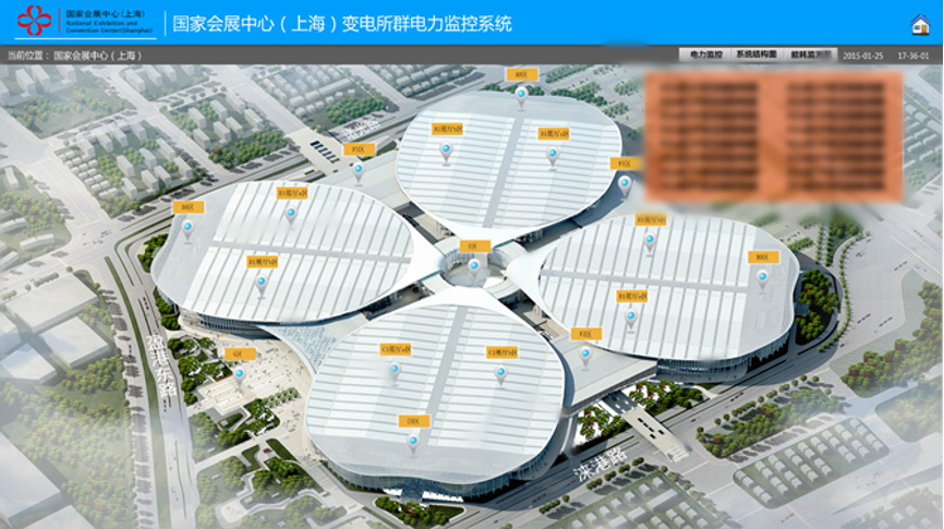 CET深圳中电技术依托“云大物移智”,融合智能设备、智能电房、智能用电、能效管理等数据源,以运营监控为载体,以海量数据、时空数据、人工智能等分析挖掘应用为手段,结合国家会展中心(上海)场馆多,结构复杂,北区48个高低压变配电所等现状,为进博会场馆北区提供EEMsys建筑能效管理系统、EnerSys建筑智能用电管理系统,接入现场6000台高低压监控装置,通过互联网+可视化管理,提高现场运行人员的快速响应和服务能力,实现 “统一展示、统一监控、统一协调”。