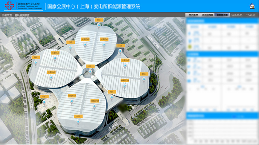 EEMsys建筑能效管理系统——集能耗监测和能效管理于一体,为进博会场馆提供一个安全、可靠、开放、透明、节能、高效的能效管理平台,不仅可实现对场馆设施能耗的实时监测和可视化管理,还提供能源审计、节能诊断分析、节能效果评估、决策支持等功能,帮助场馆用户实现节能增效的目标,创建“绿色建筑”。