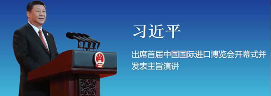 首届中国国际进口博览会(简称“进博会”)开幕式于2018年11月5日上午在国家会展中心(上海)举行。中国国家主席习近平出席开幕式并发表主旨演讲。