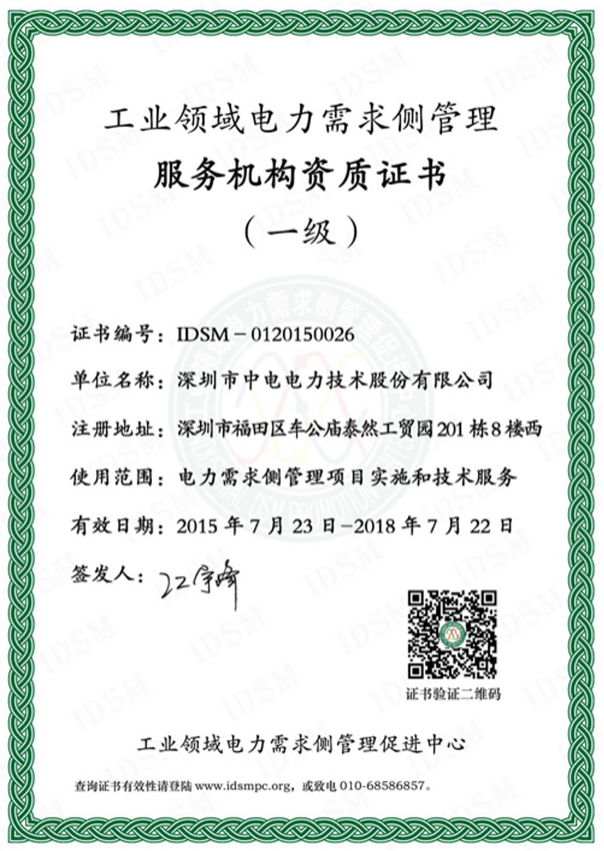 CET深圳中电技术是配合企业与政府具体实施电力需求侧的专业电能服务机构,首批获得工业领域电力需求侧管理服务机构一级资质,其中“PMC系列测控电表”、“EEMsys工业企业能源管理系统”第一批进入工信部全国工业领域电力需求侧管理参考产品(技术)目录。