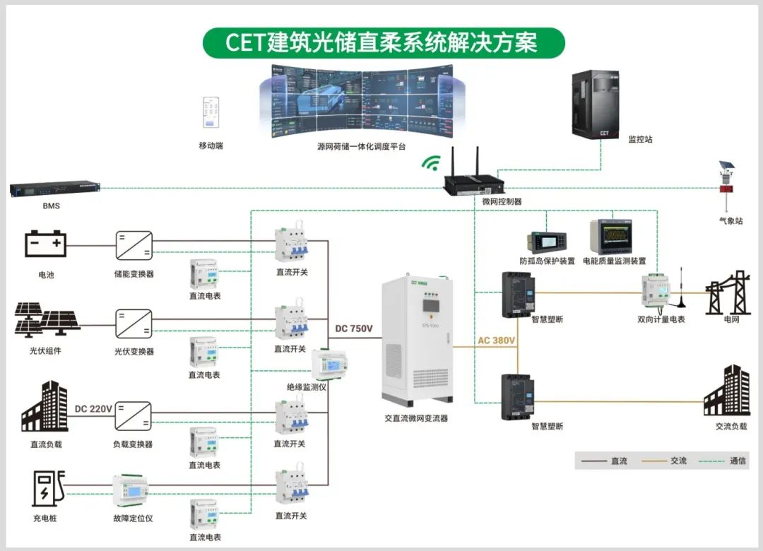 通过搭建光储直柔综合管理控制系统,可监视系统内光伏、储能、各类交直流负荷,通过单双向变换器以及双向变流器将交直流系统进行互联,通过自动控制策略自主进行柔性调节保证系统的安全稳定运行,充分发挥系统柔性。使建筑从电能的“消费者”转变为“供能者”,为园区建筑等场景提供先进的光储直柔解决方案。可实现对10kV/400V配电站房内配电设备监控、环境参数监测以及辅助设备控制的集中管理;提供就地的数据可视化和事件报警,方便在站房即时查看设备状态;产品支持触屏操作,使用便捷。