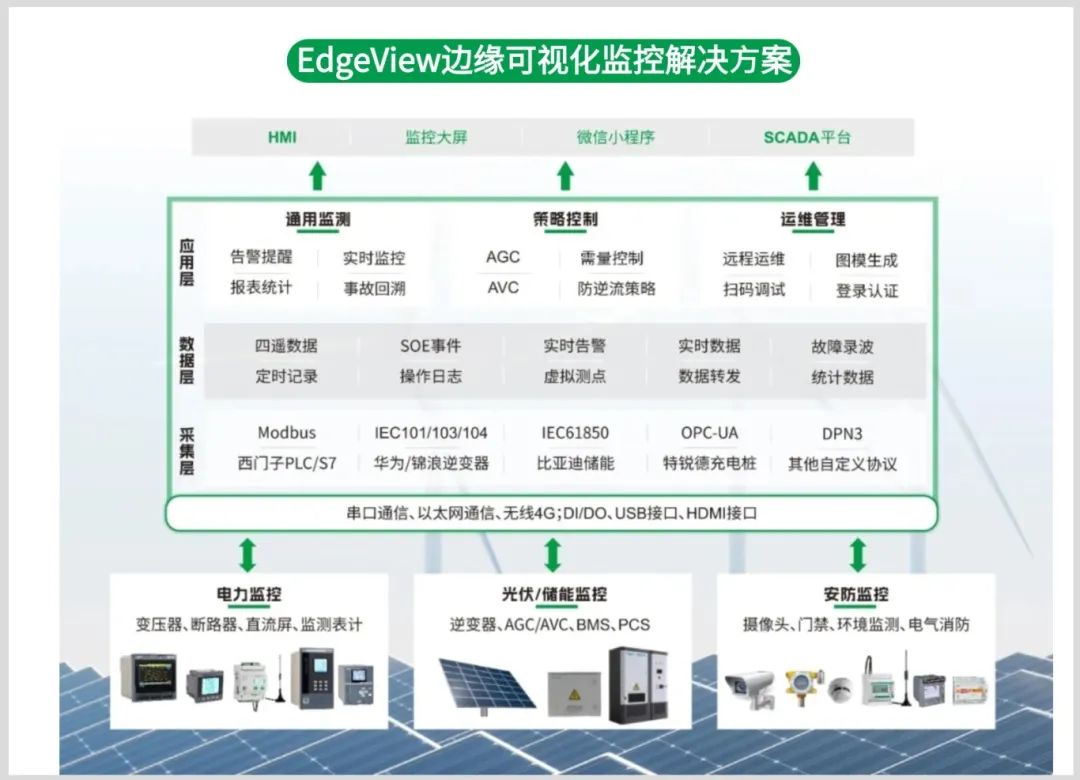 基于PMC-EasyView边缘可视化组态软件平台,深度整合智能网关和边缘应用app,为电力监控、光伏监控、储能监控、安防监控提供就地轻量化的解决方案。