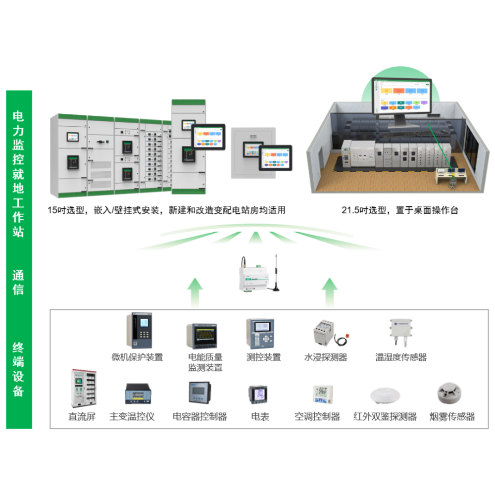 产品特点 >> 轻量化、站控级就地监控;装置体积小,安装部署方式灵活 >> 易调试、易使用、易维护,支持触屏操作 >> 接入与可扩展能力强,上下行支持行业主流标准规约,配电房主要设备全接入 >> 集成图模一体、一键生成等智能化应用,满足配电房可监、可测、可控管理需求